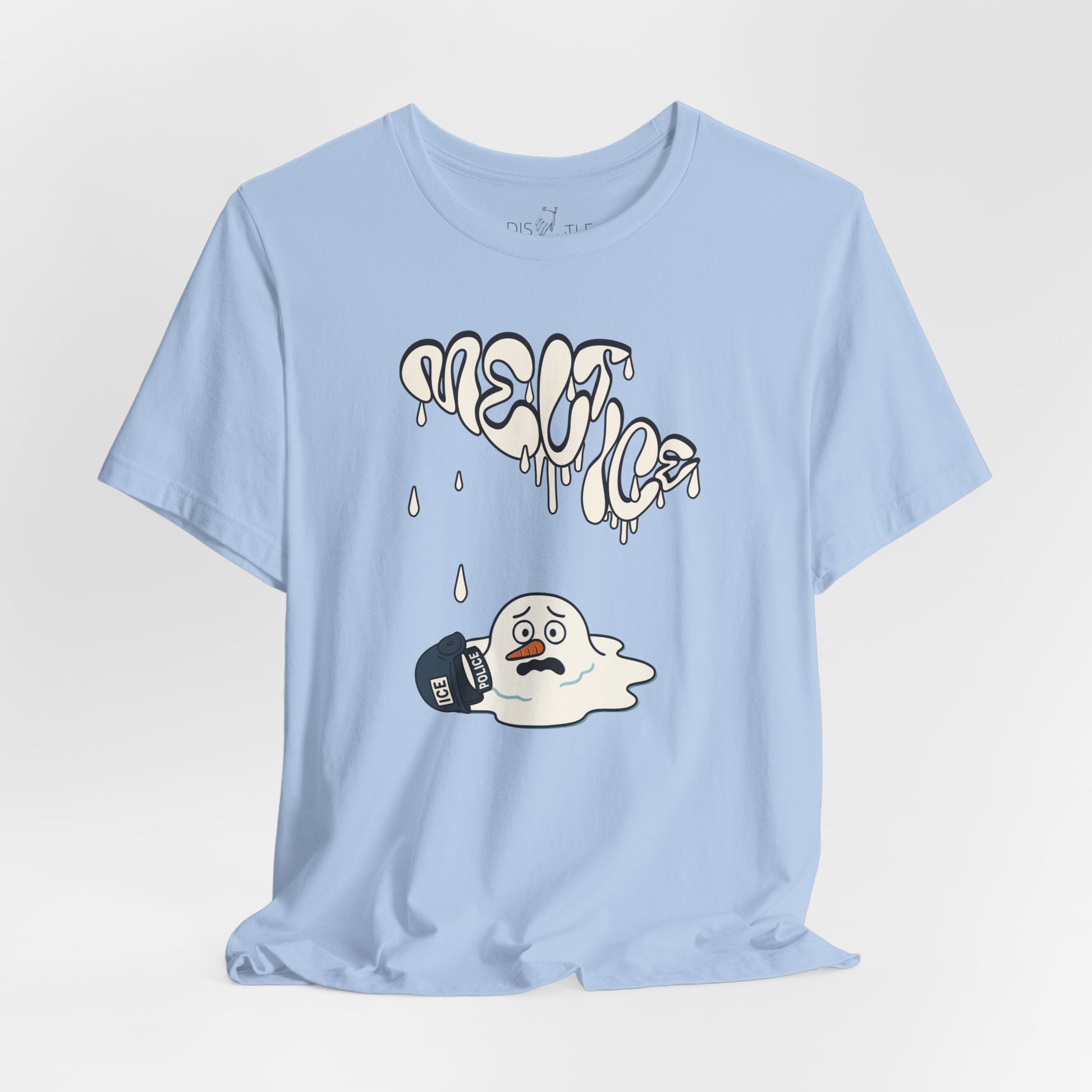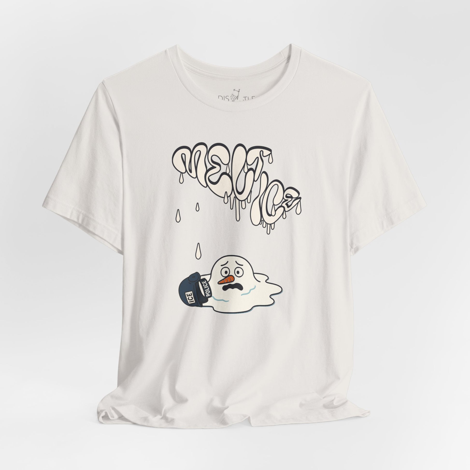 This unisex tee features a melting snowman wearing an ICE helmet — a quiet, pointed reminder that cruelty collapses under heat, pressure, and collective resistance. The design leans into seasonal imagery but refuses to soften the message: Melt ICE is both the punchline and the demand.