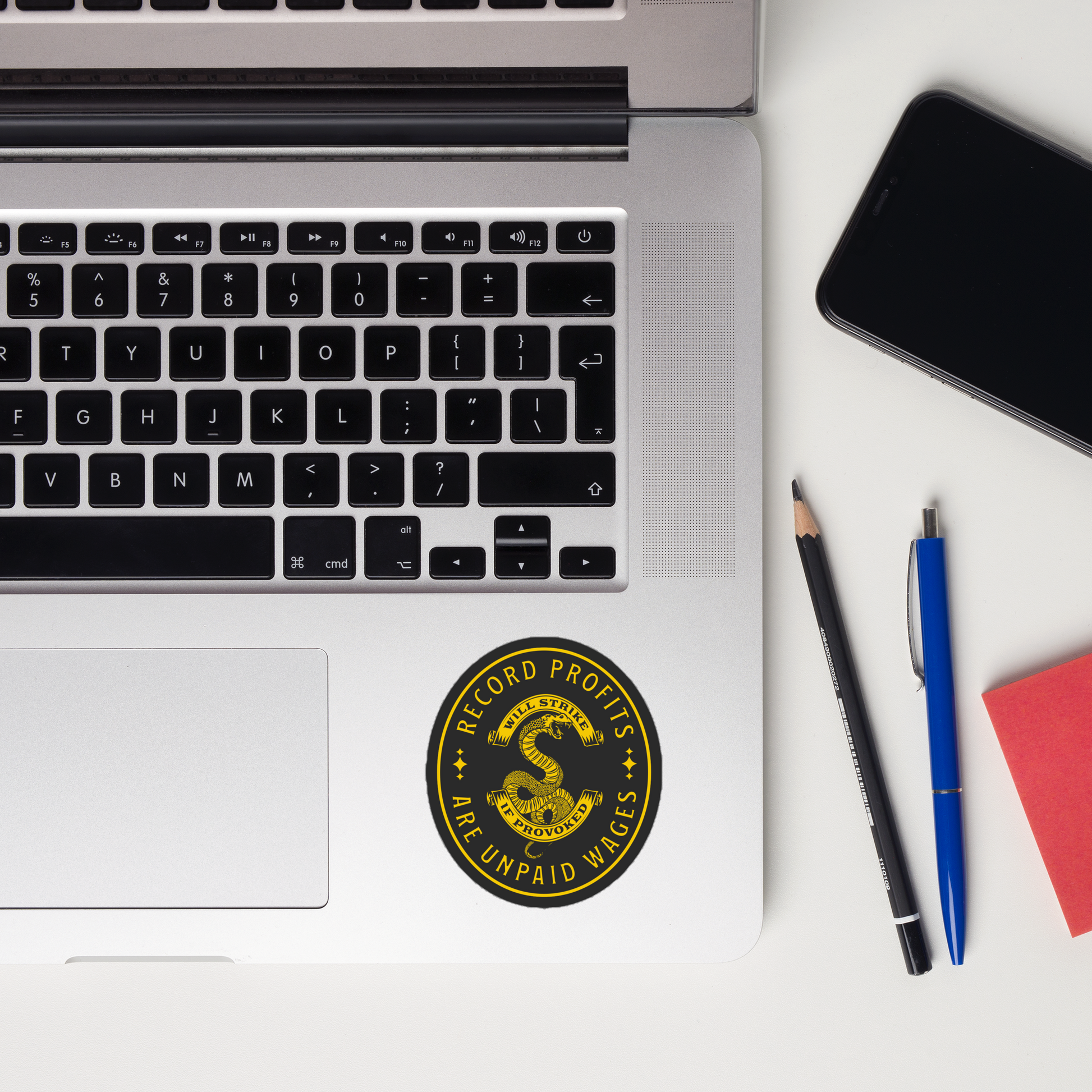 Perfect for union members, teachers, organizers, and activists, this sticker stands for fair pay, fair work, and the right to push back. Put it on your laptop, water bottle, clipboard, or car — anywhere you want to remind people where profits really come from.