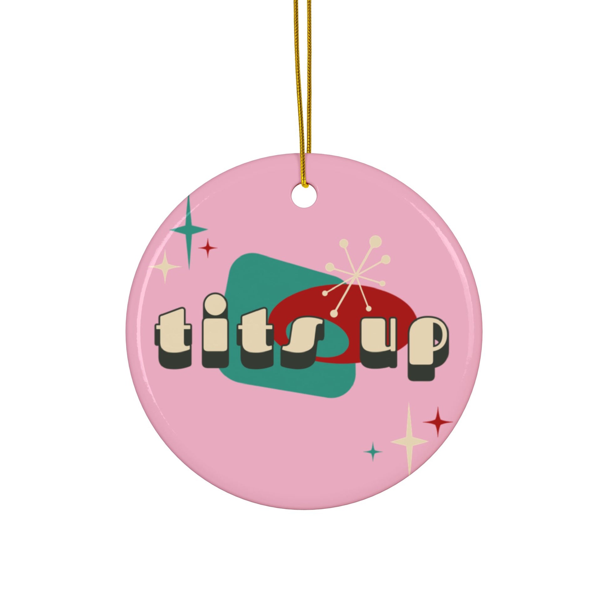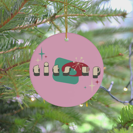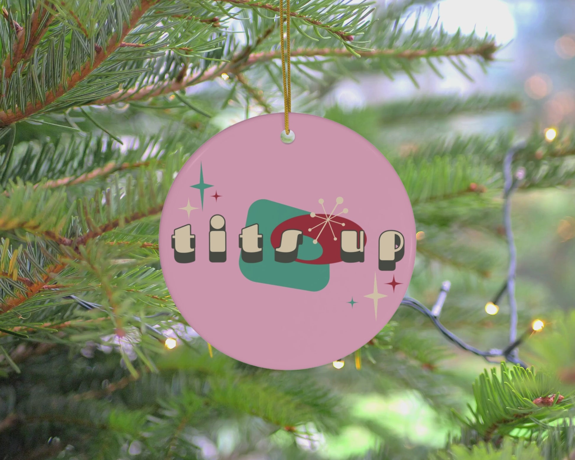 A wink, a mantra, a quiet rallying cry — this ornament turns mid-century charm into modern defiance.